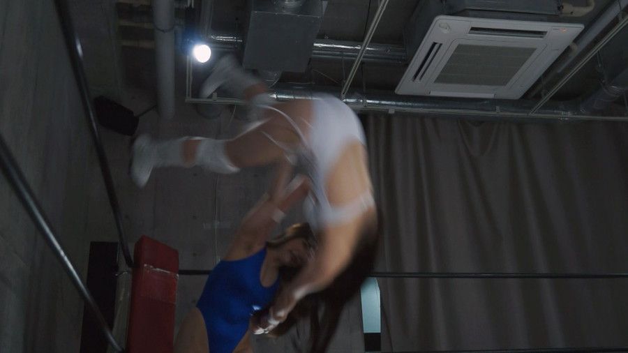 巨乳美少女レスラー七星ここが豪快にブレーンバスターで先輩野々宮みさとを投げまくる。